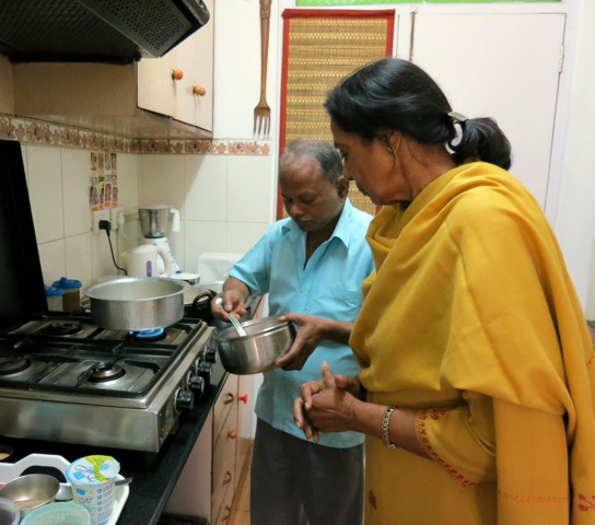 In Salma’s home outside of Delhi, I watched as she and her cook of 28 years showed me how to temper spices in oil, make poori, chapati, and roti, potato curry, chicken torma and pea and corn pulao. A full menu!