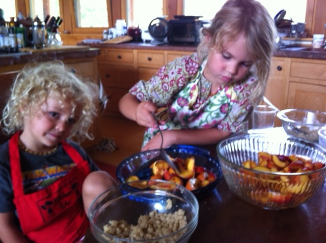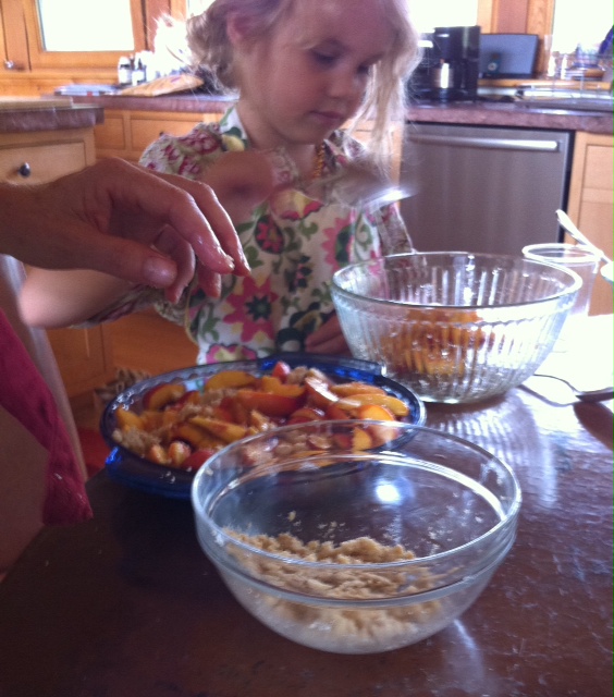 For one’s first pie, success is important. So, grandmother Peach decided to give a go as a crumble. When one doesn’t eat certain things, other things will have to do. A crumble of almond meal, butter and cinnamon will give it a Spanish flair!