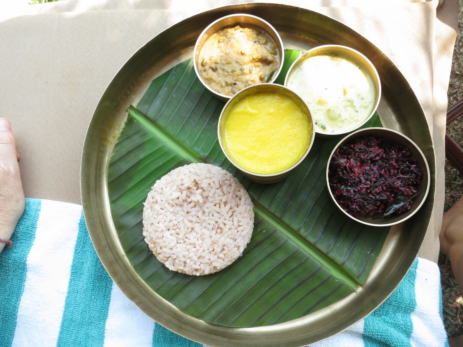 What a relief. Even with a restricted diet, no meat or alcohol, coffee or black tea, I welcomed the change. I could have green tea, local Kerala rice, and a piece of steamed fish in the evenings as well as several vegetarian curries. I even forfeited the fish. A glass of freshly pressed pineapple juice came with every meal for digestion. I could eat three tablespoons of something and feel full. It was if my digestion was on holiday too. I seriously had no appetite at all, so I asked for smaller portions. When they brought me my meal they would laugh and say, “Here is your pussycat meal,” with big pearly smiles. A sense of humor goes a long way. After five days, my dosha (body type and tendencies) felt more balanced and restored. So did my appetite.