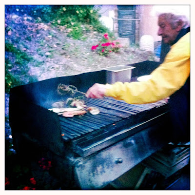 Tony Tony our captain, took us to a small restaurant named Ristorante da Benito, just off the port that looks over a mini lagoon big enough for only a few fishing boats. As I headed straight back to what I thought was the kitchen, Tony Tony said, “Where are you going? The kitchen is right here.” There was a grill set up by the tables outside. Sure enough there was old man Benito, out there grilling.